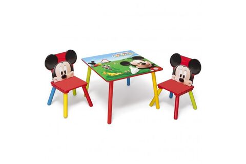 Χαρούμενα σχέδια με πολύχρωμα γραφικά με τους ήρωες της Disney συν δύο καρέκλες με επίσης πολύχρωμα γραφικά.