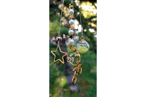 Χειροποίητα πανέμορφα γούρια του 2019, διακοσμημένα με πολύχρωμες χάντρες, μεταλλικά στοιχεία και κορδέλα λινάτσας.