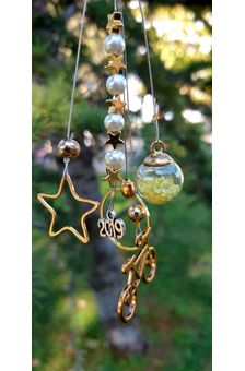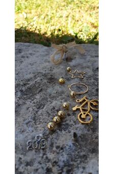 Χειροποίητα πανέμορφα γούρια του 2019, διακοσμημένα με πολύχρωμες χάντρες, μεταλλικά στοιχεία και κορδέλα λινάτσας.