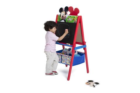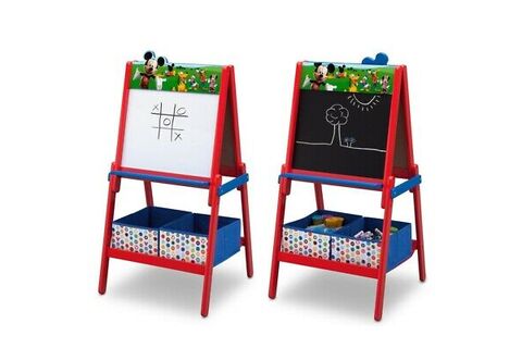 Χαρούμενα γραφικά με παραστάσεις της Disney. Σίγουρα θα εμπνεύσει τους μικρούς σας καλλιτέχνες. Διαθέτει από την μία πλευρά μαγνητικό λευκό πίνακα και από την άλλη μαυροπίνακα. Περιλαμβάνει επίσης ένα μαγνητικό παζλ και μαγνητικά γράμματα της αγγλικής αλφαβήτου. Τέλος διαθέτει δύο υφασμάτινους κάδους για να αποθηκεύουν τις κιμωλίες, τους μαρκαδόρους και τα έργα τους.
