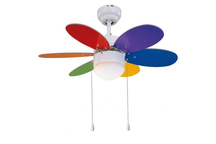 - Κομψός ανεμιστήρας με 2 ζεύγη πτερυγίων: το ένα σετ με πολύχρωμα φτερά και από τις 2 πλευρές και το άλλο με λευκό/καφέ.